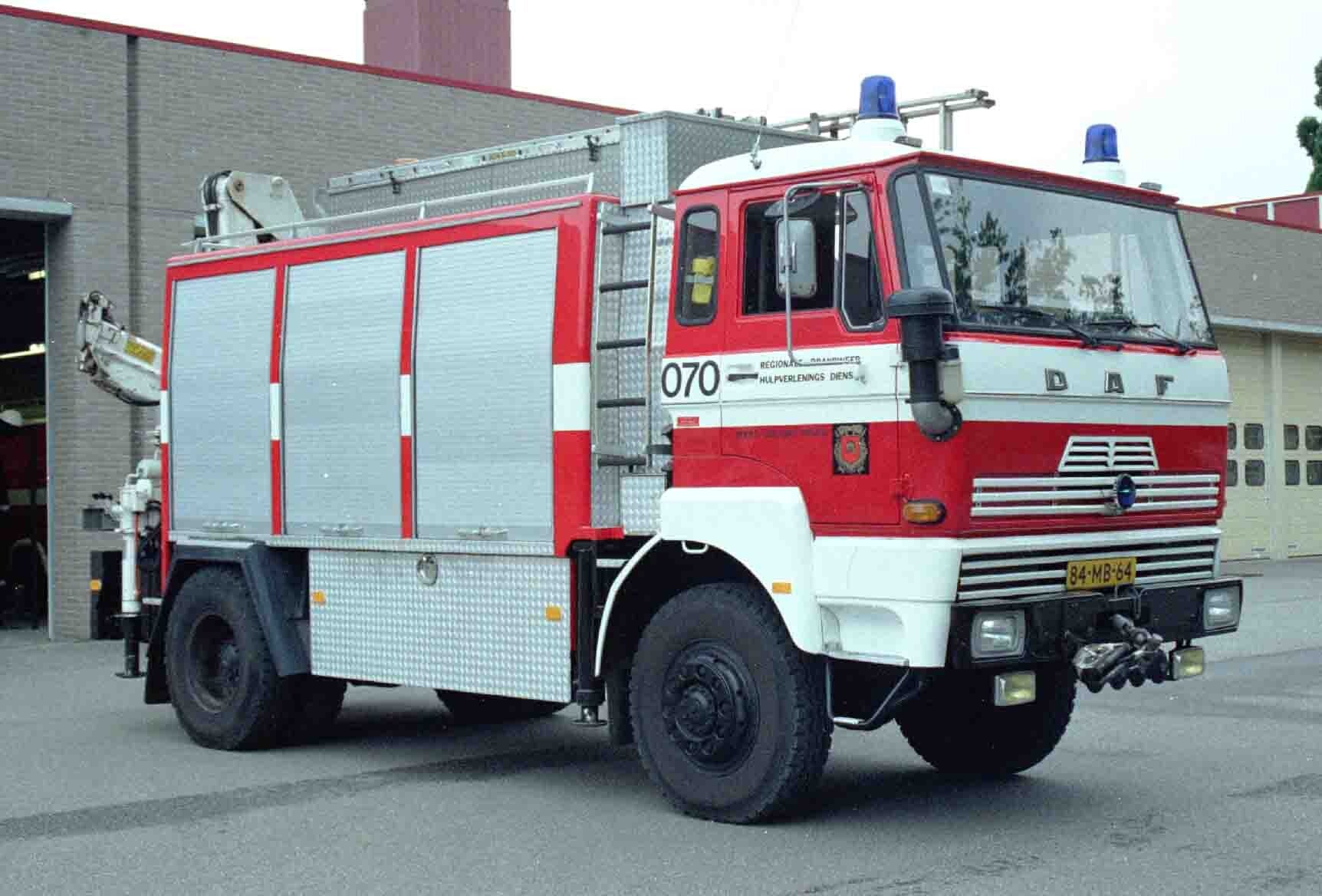 Kenteken: 84-MB-64 Roepnummer: 070 Type voertuig: HV-1 Merk & Type: DAF FFV1800DT360 Opbouw: Doeschot-Hiab Bouwjaar: 1979 In dienst: 1979 Uit dienst: 2001 . Standplaats: Ede.