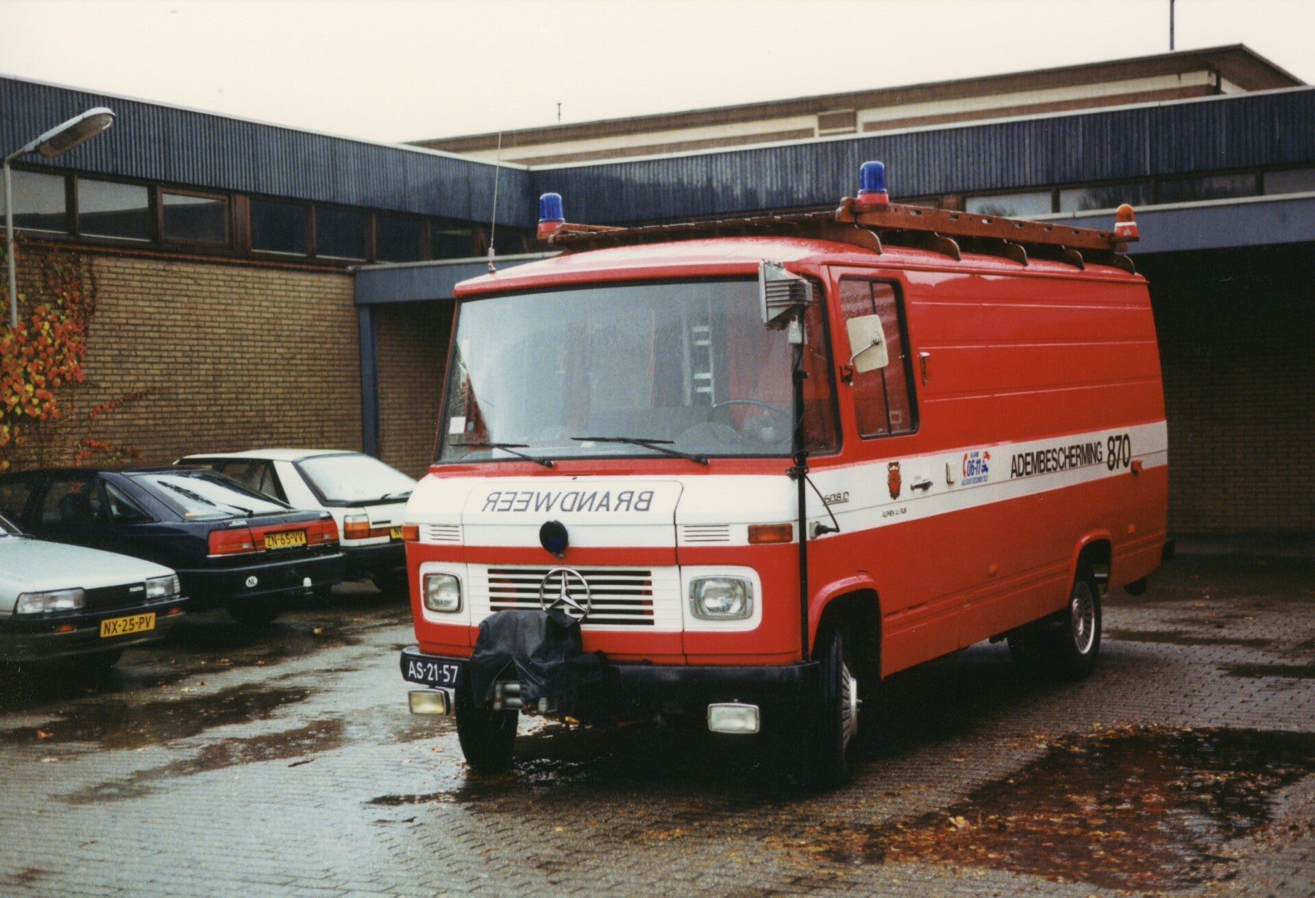 Kenteken: AS-21-57 Roepnummer: 66-870 Type voertuig: AB Merk & Type: Mercedes Benz L608D35 Opbouw: Brandweer Bouwjaar: 1971 In dienst: 1985 Uit dienst: 1994