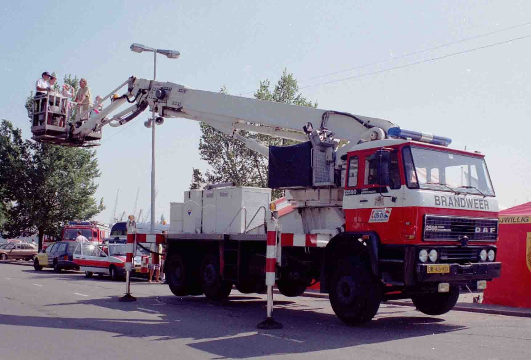 Kenteken: BN-44-JZ Roepnummer: Type voertuig: HW-23,5 Merk & Type: Daf FFG2505DHS555 Opbouw: Hilton Bouwjaar: 1985 In dienst: 1985 Uit dienst: 1993. Verkocht aan brandweer Vianen.